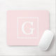 Mousepad Monograma inicial com quadro branco de rosa claro