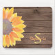 Mousepad Monograma Nome Madeira Rústica De Girassol