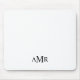 O design clássico apresenta monograma inicial personalizado de 3 letras no estilo de fonte de serif clássica em preto no fundo branco.