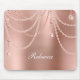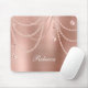 Mousepad Monograma Rosa Dourado Pérolas Diamantes Bling Gla