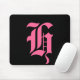 Escolha sua inicial em gótica, letras antigas em inglês em um esquema retrorreflector cor-de-rosa e preto.