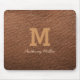 Mousepad Monograma Rustic Brown Leather Name Script Modern