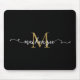 Mouse Pad Monograma Tipografia Script Dourado Preto Fofo. Um monograma dourado elegante com um nome personalizado em script decorativo branco fofo com floreios botânicos.