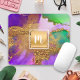 Mousepad Monograma verde de cor dourada-púrpura aqua-imperm