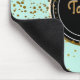 Adicione alguma elegância e bling a seu espaço de escritórios com um verde e um ouro pálidos da hortelã, ao verde macio bonito da hortelã do mousepad- monogrammed e à cor do ouro combinados. O centro tem o preto e o círculo do metal do ouro do falso com nome personalizado no roteiro de harmonização da matiz do ouro e na cor pastel da hortelã, letra inicial monogrammed. Os pontos glam dos confetes da folha de ouro do falso são dispersados transversalmente. Nota: Todas as imagens são imprimidas. Brilho nao real do metal ou dos confetes. Dê um presente personalizado para ela que será usada não somente, mas apreciado. Presente sofisticado, personalizado para as fêmeas executivas ou para a decoração feminino à moda do escritório domiciliário.