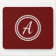 Pasta do mouse com fundo vermelho escuro e monograma personalizado branco primeiro.