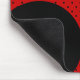 Decore sua mesa no trabalho ou casa com este tapete do rato à moda feito em um vermelho com teste padrão de bolinhas preto minúsculo. Um grande círculo preto redondo, no canto inferior esquerdo da esteira tem um grande monograma da letra do vermelho um. Personalize a letra para o senhor mesmo ou como uma grande ideia do presente.
