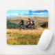 Uma aquarela de três homens pedalando nas colinas galesas.