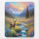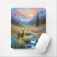Mousepad Montanha Stream Deer Wildflower Sunrise Pintura