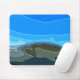 Um desenho abstrato azul vibrante de um topo de montanha e do céu.
