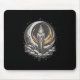 Bring a soft glow to your sacred space with this Moonlit Magic mouse pad. Featuring a striking design of candlelight under a crescent moon using La Boca filter on a black background, it adds gothic coziness and mystical charm to your work/office space.