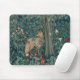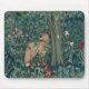 Tapeçaria de raposa solitária em um ambiente florestal exuberante. Folhas verdes profundas, flores de foxglove. William Morris Arts e artesanatos era tapeçaria.