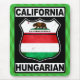 Mosto Americano da Califórnia. Design da Califórnia Húngara, ao estilo de uma placa de rota legal Americana. O texto Húngaro da Califórnia está no topo e no fundo, com a bandeira do Estado da Califórnia e a bandeira da Hungria dentro. Excelente para os californianos de ascendência húngara, e para ex-pais na República da Califórnia!