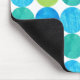 Um Mousepad de cor vibrante com um padrão de abstrato 'Luas Azuis' em azul brilhante e verde neon em fundo branco; de um design de colagem de papel pintado à mão por Judy Adamson.