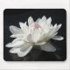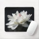 Feche um belo papel branco Água, Lily, em um mouse pad com fundo preto.