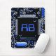 Design moderno com um fecho de um conselho de circuito do computador em azul, preto e branco e suas iniciais em azul. Mousepad com um design personalizável para você personalizar com seu próprio texto, imagens e ideias. Criado com uma fotografia original e técnicas digitais por Jess Perry.