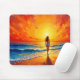 Mousepad Mulher caminhando na praia do oceano quente pôr do
