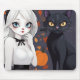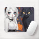 Mousepad Mulher de anime com gato preto.