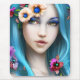 Mousepad Mulher etérea com flores em seu cabelo azul