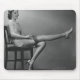 Mulher que senta-se na cadeira, pndo sobre meias (marcas de B&W) | George | AssetID: 72131215