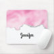 Um mouse pad com uma borda cor-de-rosa na moda de algodão doce com uma borda reluzente prateada (faux glitter).