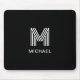 Atualize seu espaço de trabalho com este mouse pad moderno e na moda monograma. Com um fundo preto elegante, ele mostra um nome e uma inicial personalizados em uma fonte limpa e contemporânea. Criada com uma superfície lisa e materiais duráveis, essa cobertura do mouse garante controle preciso do mouse e uso duradouro. Seu design minimalista o torna perfeito para uso profissional ou pessoal, acrescentando um toque de sofisticação a qualquer mesa.