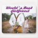 Mousepad com o melhor namorada do mundo em texto roxo 3D. Personalize-o com a sua própria fotografia.