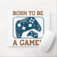 Um design ousado e elegante com dois controladores de jogos azuis com textura em apuros, enquadrado por um contorno retangular. A frase "Nascer de ser um jogador" é exibida em letras laranja grandes e robustas, criando um olhar legal e poderoso.