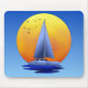 Para capitães para baixo às mãos de plataforma, ao gráfico da navigação do catamarã do vetor com por do sol e às gaivotas.