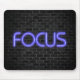 Sinal de marca de focagem em neon roxo brilhante na parede de tijolos urbanos.