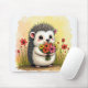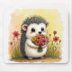 Um ouriço fofo segura um buquê vibrante rodeado por florescentes flores vermelhas.