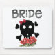 design de noiva de esqueleto legal para noivas de quadril, noivas góticas ou noivas de Halloween. Este crânio tem um arco vermelho e flores vermelhas e a palavra noiva em preto e branco.