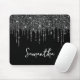 Personalize o script de estilo manuscrito moderno para criar seu próprio mouse pad. Adicione uma inicial de monograma para criar uma combinação inicial de nome. O brilho preto feminino pinga a arte digital que vai impressão como uma foto na sua design. Personalize a cor de fundo sólida.