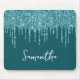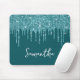 Personalize o script de estilo manuscrito moderno para criar seu próprio mouse pad. Adicione uma inicial de monograma para criar uma combinação inicial de nome. O brilho fino feminino goteja arte digital que vai impressão como uma foto na sua design. Personalize a cor de fundo sólida.