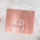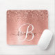 Personalize facilmente este design da pastilha chic do mouse moderno com brilho bonito rosa dourado brilhante em um fundo metálico escovado rosa dourado.