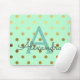 Mint Green e Gold Foil Bolinhas Monograma Name Monograma Mousepad. Este teclado do mouse pode ser personalizado para incluir seu primeiro nome e inicial.