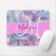 Mousepad Nome do Monograma Iridescente Holográfico Rosa Gir