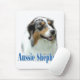 Aussie. Mostre sua raça favorita de cachorro com este design. Simples, mas elegante, nosso design apresenta uma foto australiana Shepherd rotulada com o nome da raça.