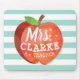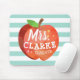 Um divertimento e um verde ligeiro do seafoam listraram o tapete do rato que caracteriza uma ilustração estilizado da maçã. Dentro desta maçã é o nome do seu professor favorito em uma pia batismal brincalhão do estilo.