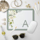 Bonito, moderno e elegante, este design de pastilha de mouse moderno apresenta um motif floral de aquarela pintado manualmente no canto, com seu nome e monograma iniciais em cinza verde e cinza doce, tipografia de script alfanumérico, e é bordado em verde cinza correspondente. Copyright Anastasia Surridge for Personalised Home Decor, todos os direitos reservados.