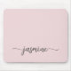 Mousepad personalizado com monograma de nome em rosa bege minimalista e simples, com letra manuscrita e cauda florida. Este design apresenta seu primeiro nome em uma fonte tipográfica de letra manuscrita bonita em rosa bege claro ou rosa poeirento. Estes são fáceis de personalizar. Ótimo presente feminino e elegante para aniversário, chá de panela, dia das mães, aniversário de 16 anos e é para a garota que ama coisas únicas e minimalistas.