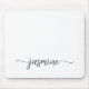 Mousepad personalizado com monograma de nome em estilo minimalista preto e branco. Este design apresenta seu primeiro nome em uma linda tipografia de letra manuscrita com cauda swash em preto sobre fundo branco. Estes são fáceis de personalizar. Ótimo presente feminino e elegante para aniversário, chá de noiva, dia das mães, aniversário de 16 anos e é para a garota que ama coisas únicas e minimalistas.