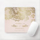Vintage floral lace design em shimmery faux gold em fundo cor-de-rosa pincelado, com nomes de casais personalizados e data, elegante e elegante, presentes personalizados de excelente.