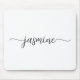 Mousepad personalizado com monograma de nome em estilo minimalista preto e branco. Este design apresenta seu primeiro nome em uma linda tipografia de letra manuscrita com cauda swash em preto sobre fundo branco. Estes são fáceis de personalizar. Ótimo presente feminino e elegante para aniversário, chá de noiva, dia das mães, aniversário de 16 anos e É para a garota que ama coisas minimalistas e elegantes únicas.