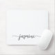 Mousepad personalizado com monograma de nome simples minimalista preto e branco. Este design apresenta seu primeiro nome em uma linda fonte de letra manuscrita com cauda swash em preto sobre fundo branco. Estes são fáceis de personalizar. Ótimo presente feminino e elegante para aniversário, chá de noiva, dia das mães, aniversário de 16 anos e é para a garota que ama coisas únicas e elegantes minimalistas.