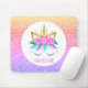 Este mouse pad de unicórnio apresenta uma bela design de princesa de unicórnio com coroa, flores e falso fundo brilhante do arco-íris. Personalize-o com um nome.