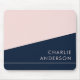 Mousepad Nome personalizado mínimo azul escuro e rosa moder