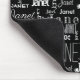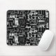 Este mouse pad é preto e branco com um texto que pode ser personalizado com um nome ou palavra de sua escolha.