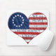 Colorida bandeira vermelha, branca e azul original de 13 estados Betsy Ross American em forma de coração, com a primeira linha do Preâmbulo da Constituição dos Estados Unidos da América.