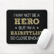 Eu posso não ser um herói, mas sou uma Hairstylist tão perto o suficiente de arte humorística em sans-serif e rabiscar letras cruzadas em branco e ouro amarelo.
